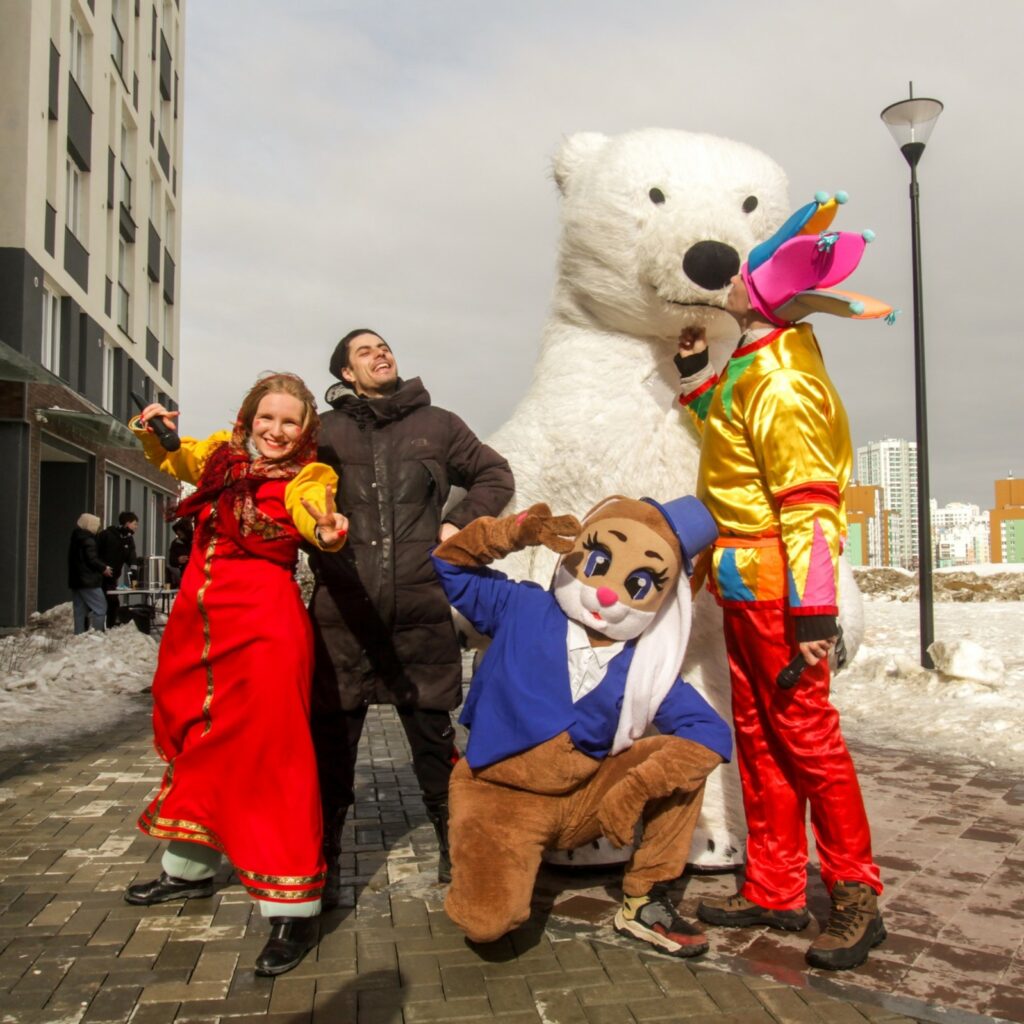 «Снежная скульптура» — команды лепят фигурки из снега, а жюри оценивает креативность.